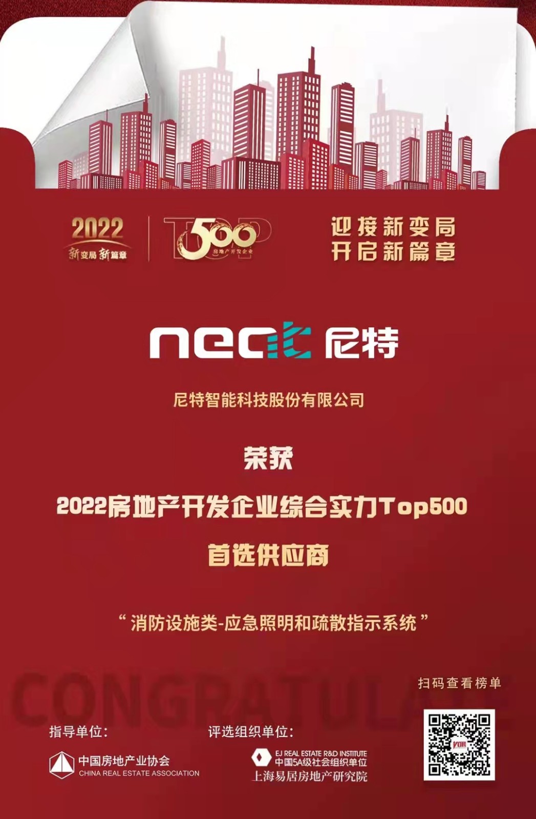 恭喜尼特連續五年獲評500強地產首選供應商殊榮!!智能疏散品類位列榜首!!!